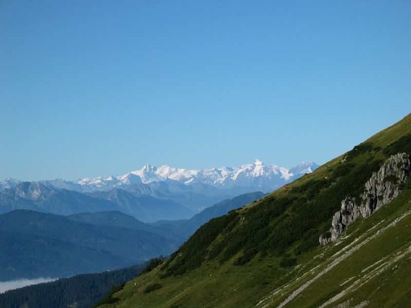 (9) links der Bildmitte der Großglockner, rechts davon das Wiesbachhorn in ca. 80 km Entfernung