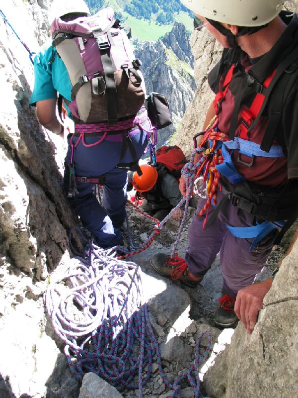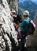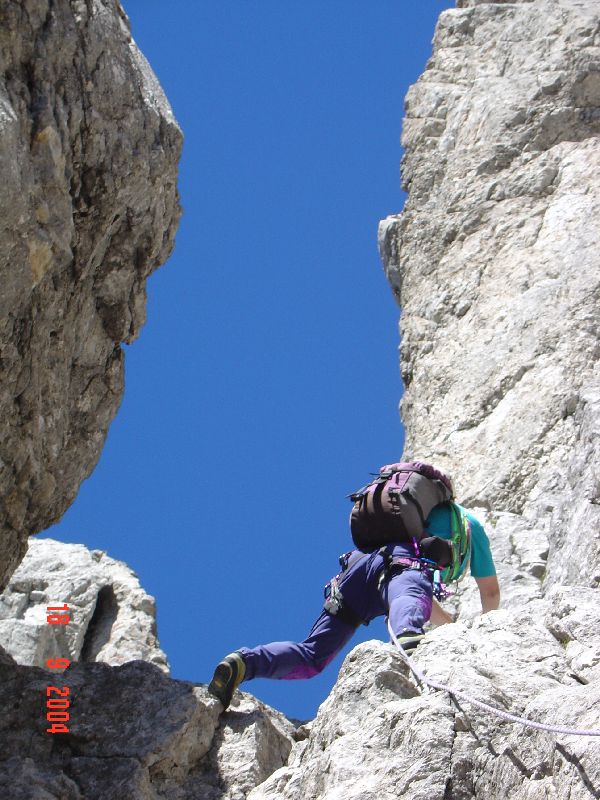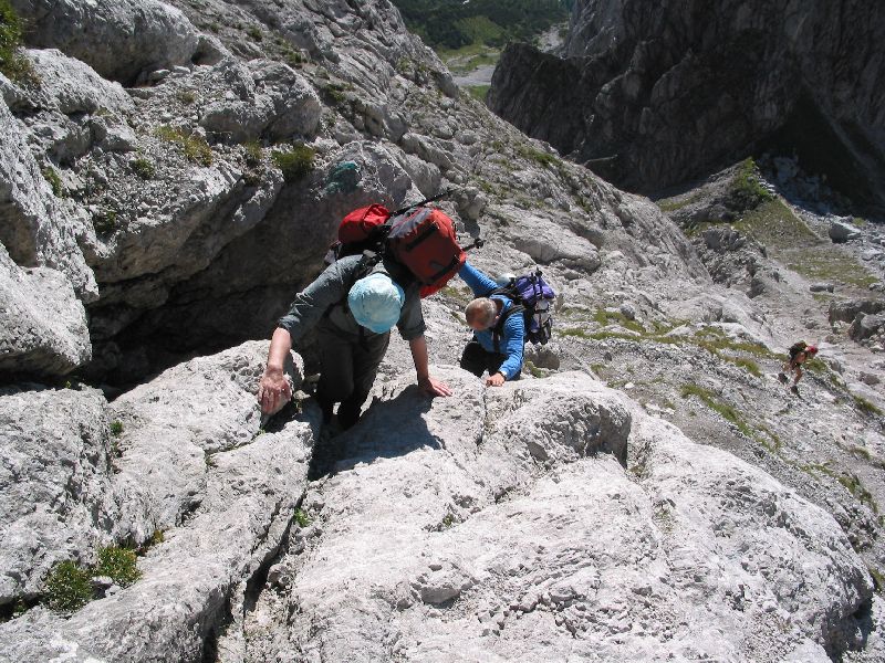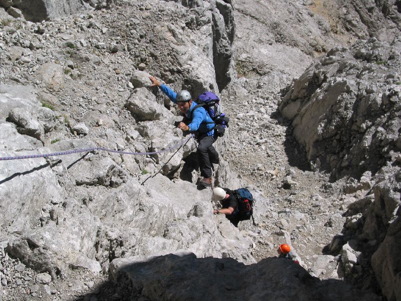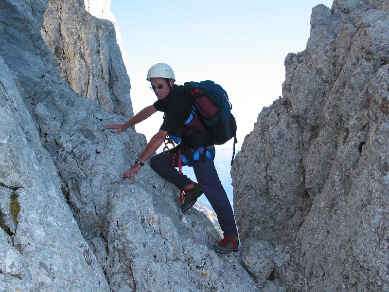 (16) Am Einstieg in der Südschlucht gleich die Schlüsselstelle (III)