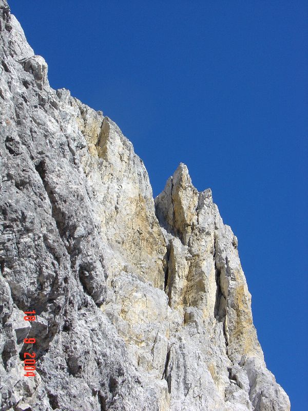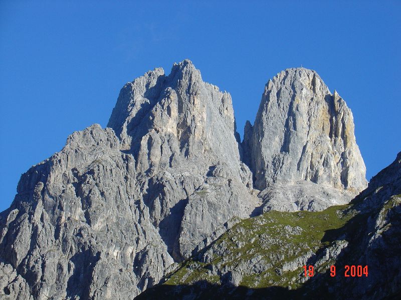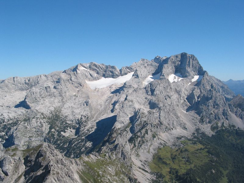 (19) Deutlich sind die Wunden der letzten Bergstürze (1999) an der Bischofsmütze zu erkennen
