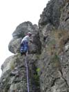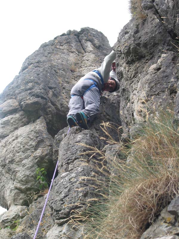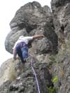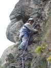 (6) Hans beim Einarmigen Klettern in der 1.SL