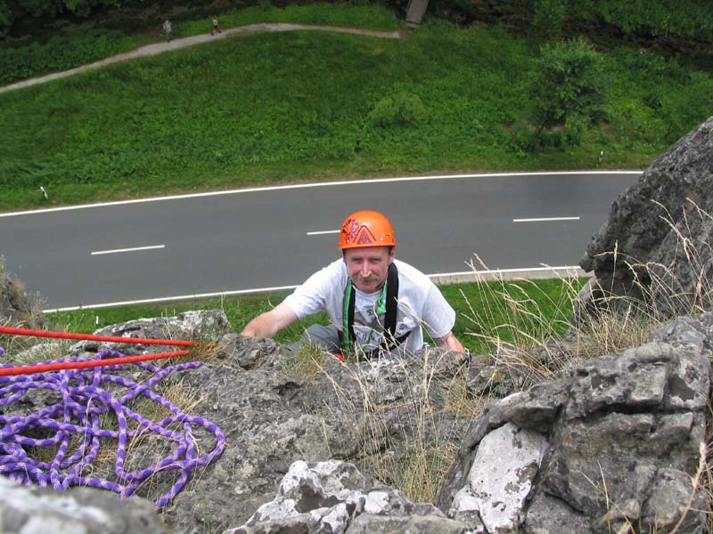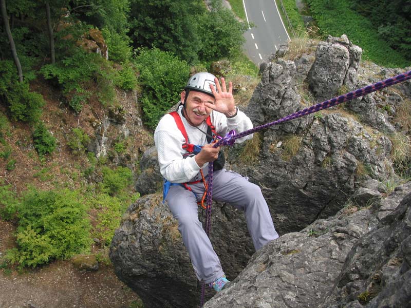 (13) Hans, als alter Profi, beim Posing unterm Abseilen